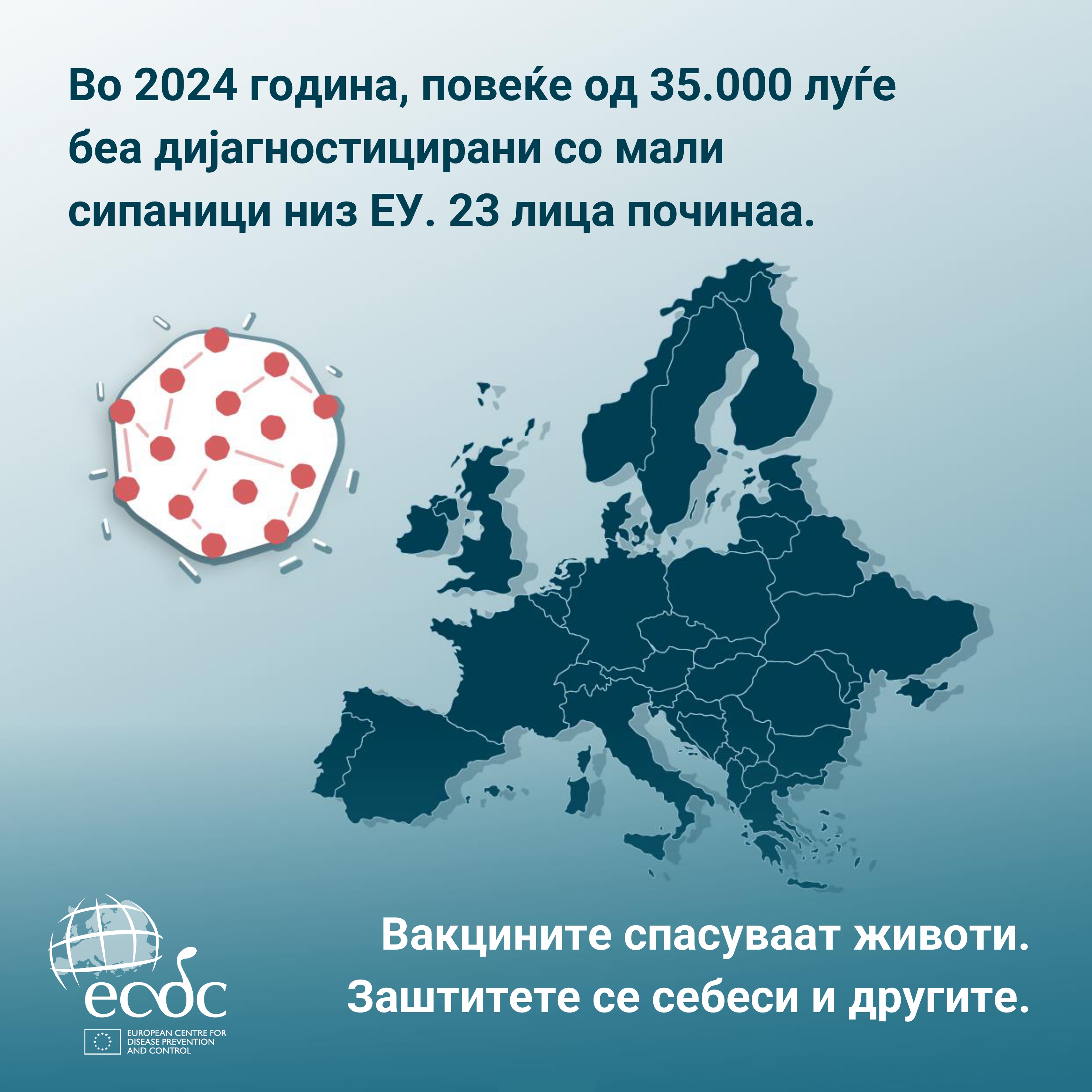 Во 2026 година, Европската недела на имунизација се одбележува од 19 до 25 април под мотото: „Вакцините делуваат – за секоја генерација“. Оваа недела претставува важна можност да се потсетиме дека вакцините се едно од најголемите достигнувања на современото јавно здравје. Тие секоја година спасуваат милиони животи и спречуваат ширење на опасни заразни болести, штитејќи не само поединци, туку и целата заедница преку колективен имунитет.