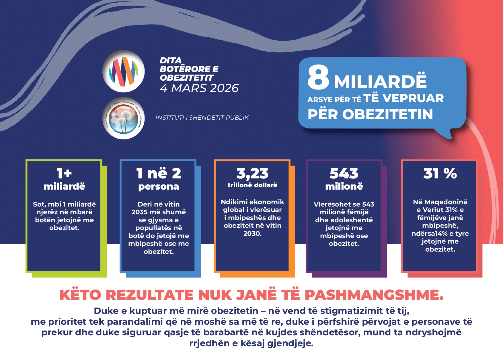 Këto rezultate e theksojnë nevojën emergjente për ndërhyrje sistemike në mjedisin shkollor dhe familjar të fëmijëve, me qëllim promovimin e rritjes dhe zhvillimit të tyre të shëndetshëm. Ndërhyrjet janë të nevojshme edhe në fusha të tjera. Reformulimi i ushqimit, informacionet lidhur me ushqimin, reklamimi, mjedisi urban dhe mundësia për praktikimin e lëvizjes së sigurt dhe aktivitetit fizik janë vetëm disa prej tyre.