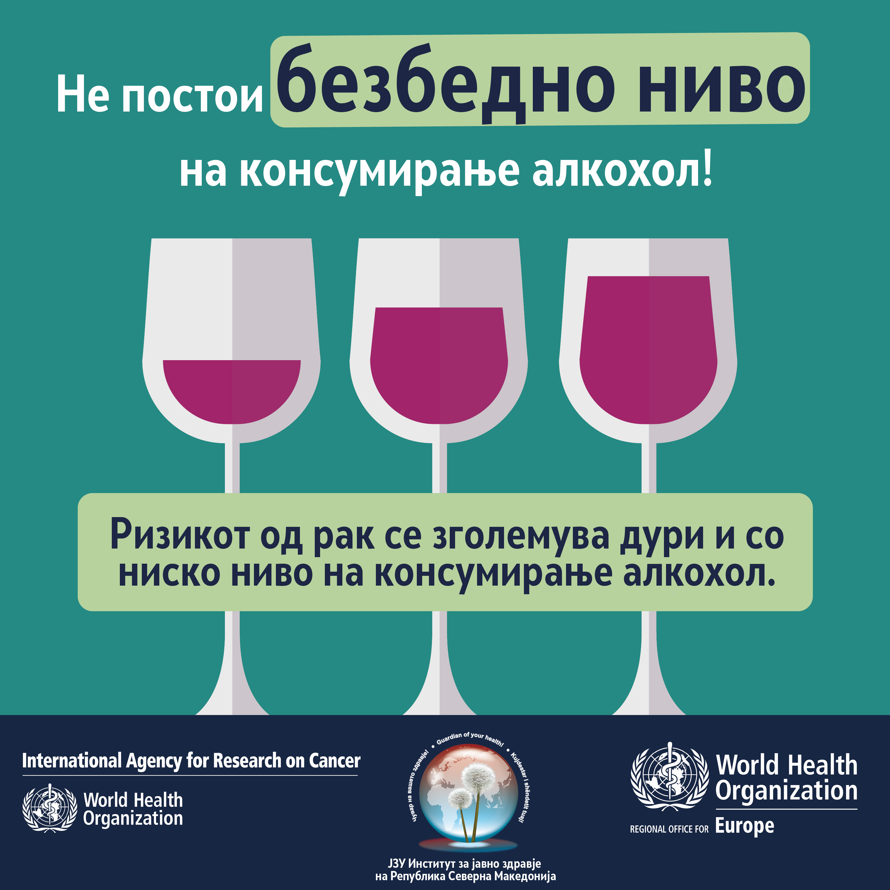 „Не можеме да зборуваме за таканаречено безбедно ниво на употреба на алкохол. Без разлика колку пиете, ризикот по здравјето на оние кои консумираат алкохол започнува од првата капка. Единственото нешто што можеме да го кажеме со сигурност е дека колку повеќе пиете, толку е поштетно – или, со други зборови, колку помалку пиете, толку е побезбедно“ - д-р Карина Фереира-Боргес-в.д. раководителка на единицата за управување со незаразни болести и регионален советник за алкохол и недозволени супстанции